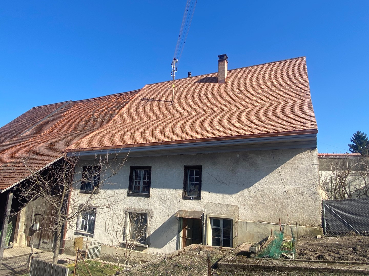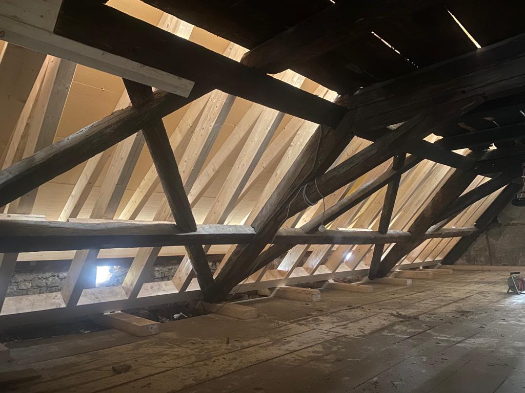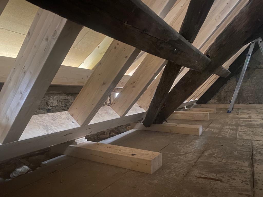 Ersatz der alten Tragkonstruktion wie Primär- und Sekundärtragwerke. Dacheindeckung nach Ortsbildschutzzonen – Vorschriften mit Biberschwanzziegel Doppeldeckung.